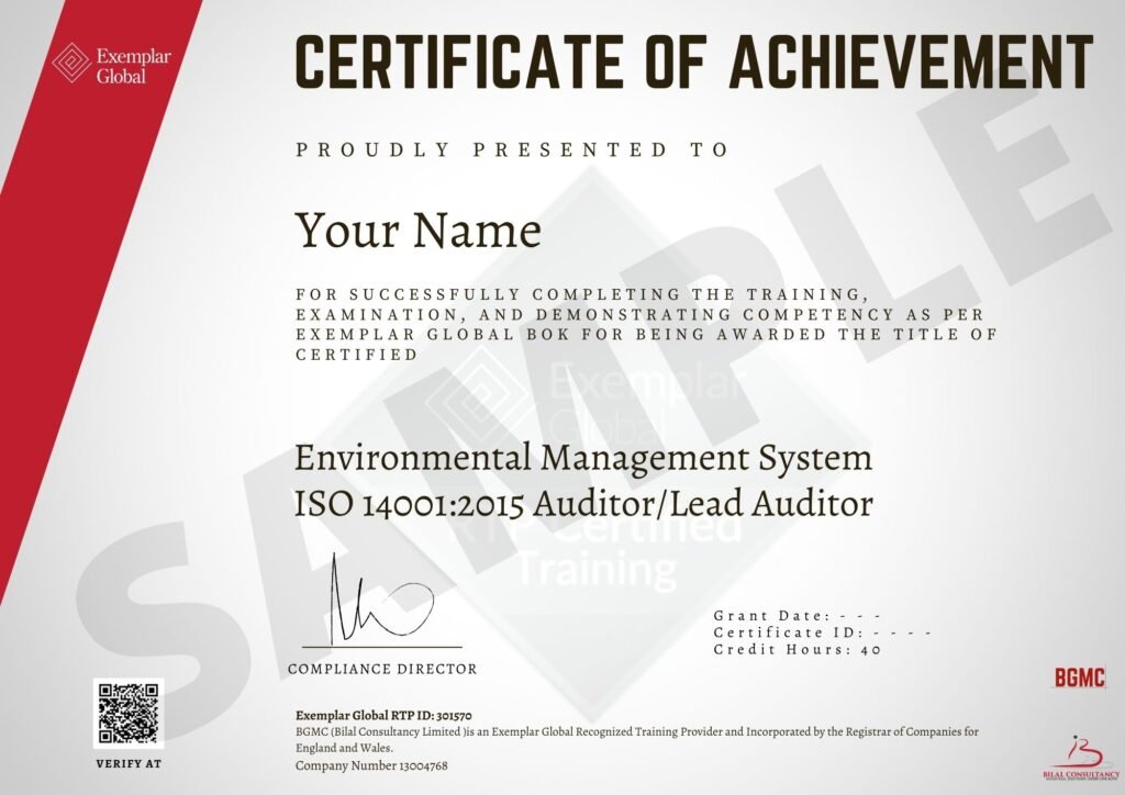 ISO 14001 Lead Auditor training enables you to master pertinent expertise to perform an Environmental Management System (EMS) audit by deploying globally recognized audit principles, procedures, and techniques.