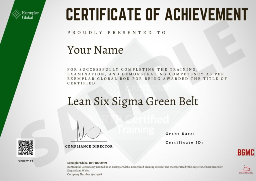 The Lean Six Sigma Green Belt Certification will be endorsed by Exemplar Global USA.